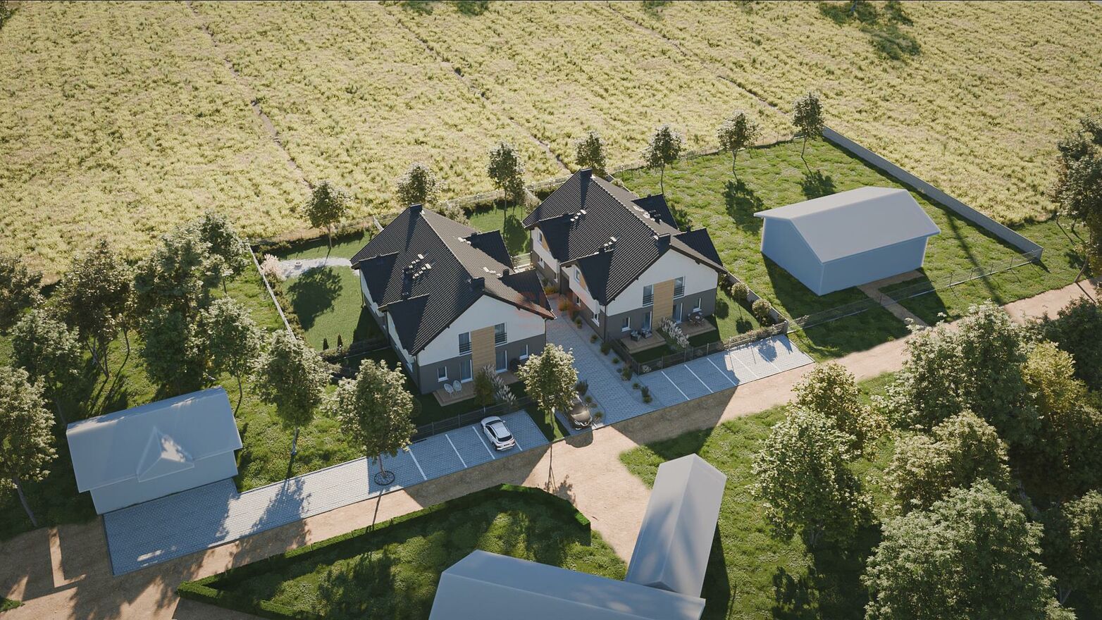 Segment dwupiętrowy w zabudowie bliźniaczej dostępny od Maja 2025 w miejscowości Krośnice, 50km od Wrocławia
